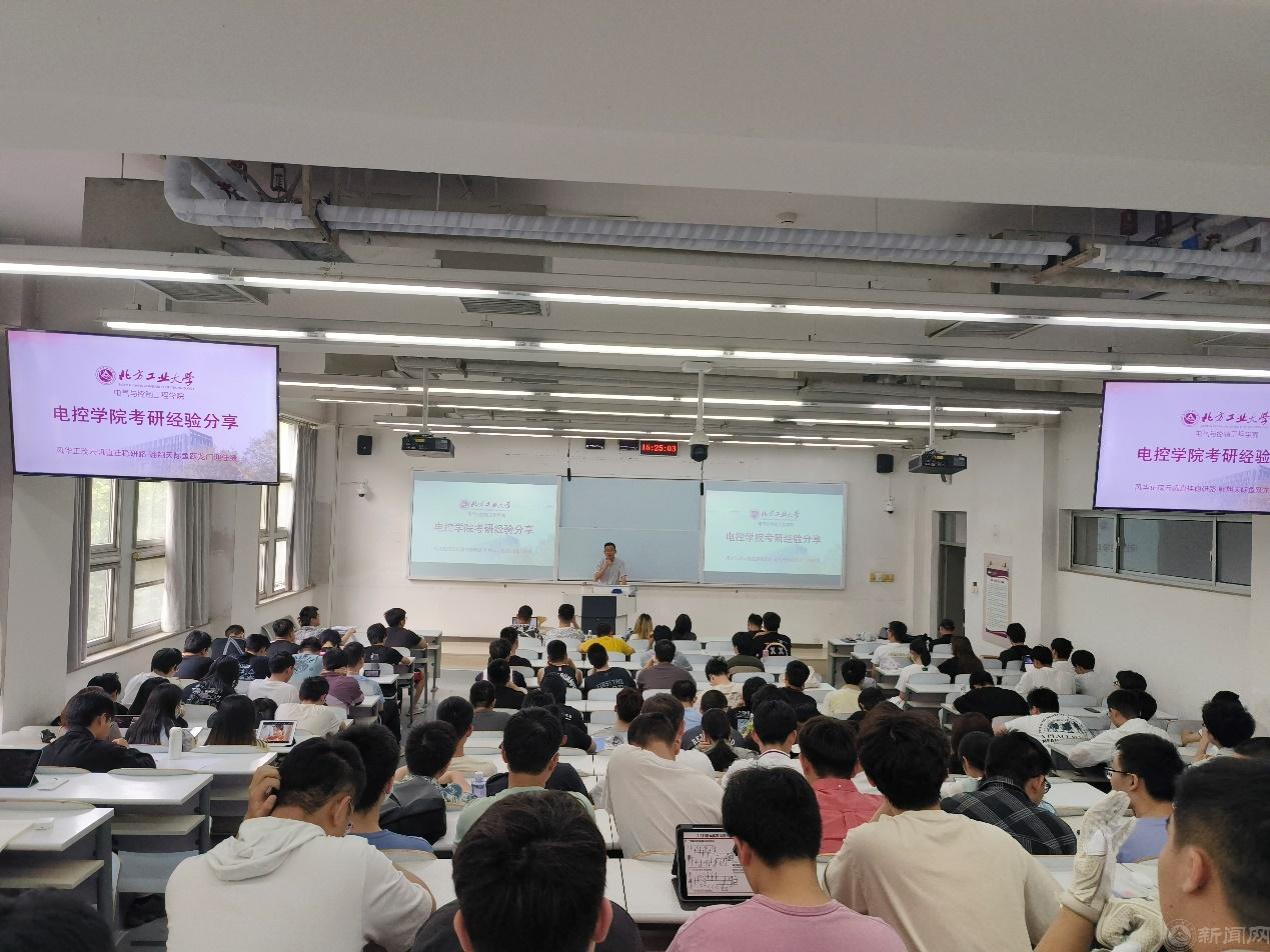 在瀚学楼101面向20级学生举行职业生涯规划指导及考研经验分享会。学院党委副书记王磊、19届5位优秀考研学生代表,2020级学生近二百余人参会。