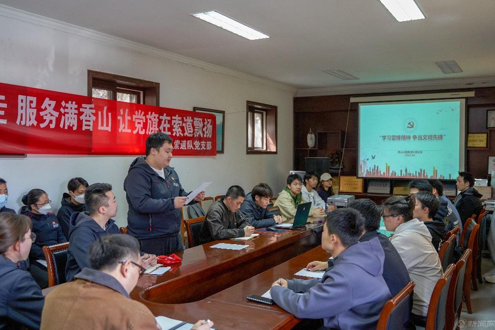 团委组织团员青年前往香山,与香山公园索道队团支部联合开展“学习雷锋精神,争当文明先锋”主题团课。