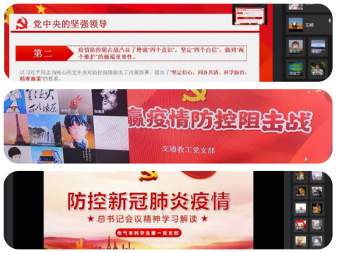 各党支部按照学院党委的安排,早做准备,细致安排,认真落实“三会一课”制度,充分运用企业微信工作平台、学习强国视频会议系统等线上方式,坚持组织生活不中断、政治学习不放松,实现师生党员互动不断线。这次抗疫专题学习活动,旨在加强特殊时期党员教育管理工作,让广大师生党员在疫情防控中践行初心和使命,体现责任与担当。
