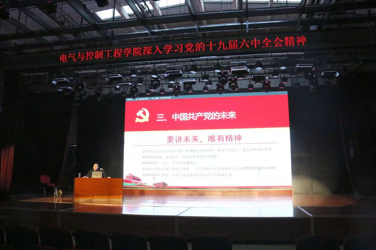 党的十九届六中全会精神师生宣讲团成员、马克思主义学院周守高老师作宣讲报告,学院党委委员、全体师生党员共计300余人参加了大会,学院党委书记李颖宏主持报告会。