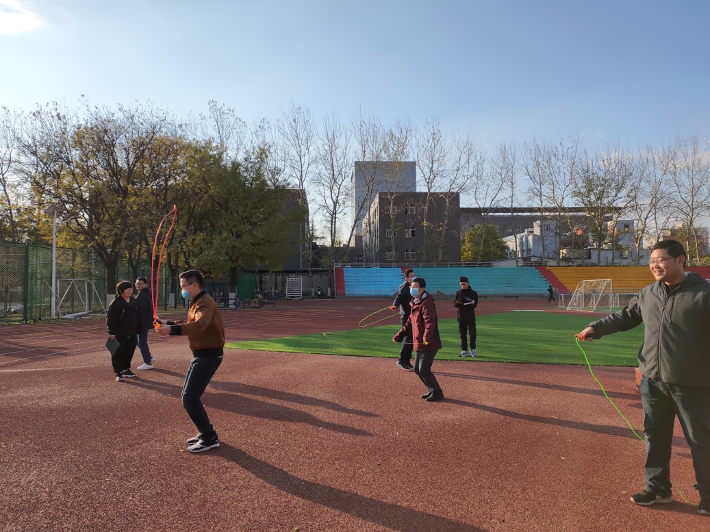 趣味运动会包含跳绳、踢毽、定点投篮等几个比赛项目。老师们积极踊跃参加此次活动,大家经过赛前热身,以饱满的热情投入到比赛中,充分享受运动带来的乐趣。趣味运动会结束后,部分老师在篮球场进行了篮球友谊赛。