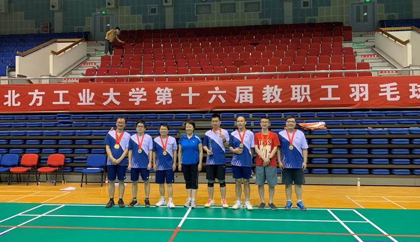 在第十六届教职工羽毛球比赛男子团体赛中经过紧张备战和激烈角逐,最终获得桂冠!