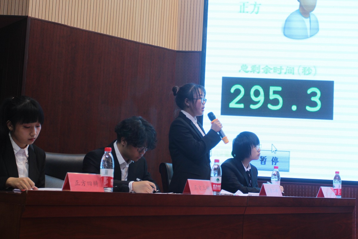 团委11月20日在文化会堂举办了“菁英杯”辩论赛决赛。辅导员库颖、王磊,班导师张晓平,艺术团团长虞韫菡,校学生会主席刘远东担任此次辩论赛的评委,200余名学生到场观看。