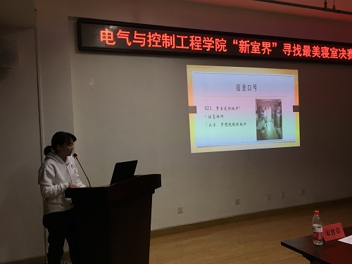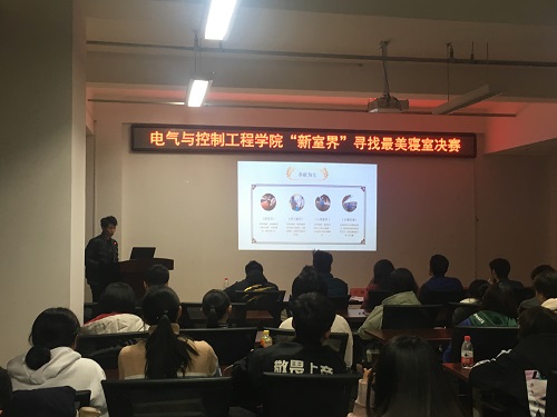 团委举办的第一届“新室界”寻找最美寝室大赛决赛在博远楼452举行。辅导员库颖、王磊,学生会主席王思源、副主席李祎、副主席宋育章,团委副书记沈建新担任此次比赛评委。