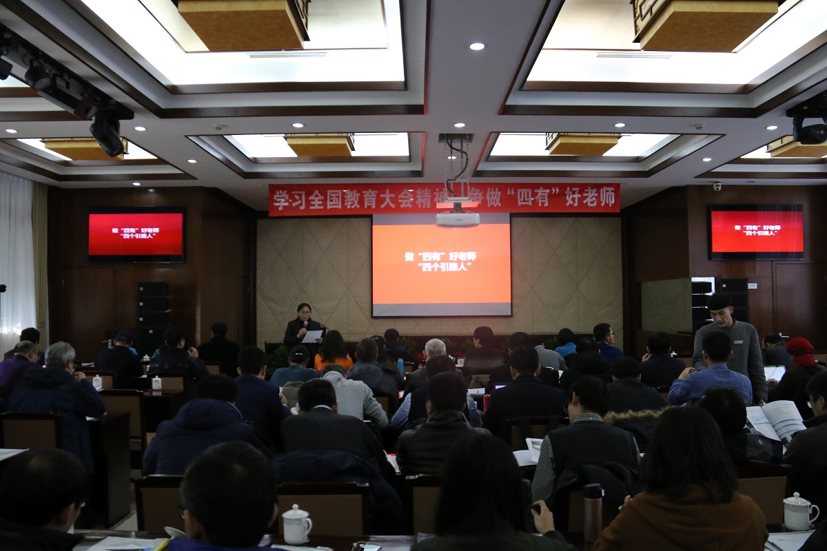 于12月7日组织召开了师德建设交流研讨会。本次研讨会也是学院落实学校2018年开展的“做新时代‘四有’好老师和‘四个引路人’”学习实践活动的内容之一。首都师范大学教师工作部长苏寄宛,学校人事处长、教师工作部部长毛燕梅、学院全体教职工近百人参加了培训研讨,会议由学院党委书记李颖宏主持。