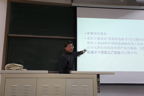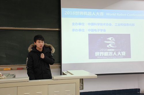 在广学楼501举办了2018年学生科技活动总结表彰及动员大会。学院负责大学生科技活动的电气与控制实验中心郑勇老师,竞赛指导教师王鹏、王捷,辅导员王磊老师以及科协、竞赛获奖代表、各年级学生代表等150人到场参加。