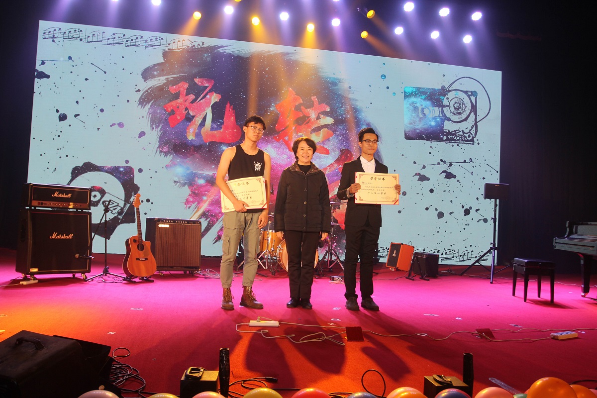 励学楼工作6年、最受同学们欢迎的嘉宾“二教大叔”表演一曲《花房姑娘》后,“绘蓝图,展新章”个人组和团体组晋级选手展开第二轮激烈角逐,有经典曲目《加州旅馆》,有激情Rap《午夜杂谈》,有火爆全网的《大鱼》……给全场观众带来了一场高质量的视听盛宴。最终,韩钰和失衡相位乐队凭借自己高超的音乐水平分别获得单人组和团体组冠军。校党委副书记田红芳、校团委书记何有华、学工部副部长赵帅为获奖选手颁奖。