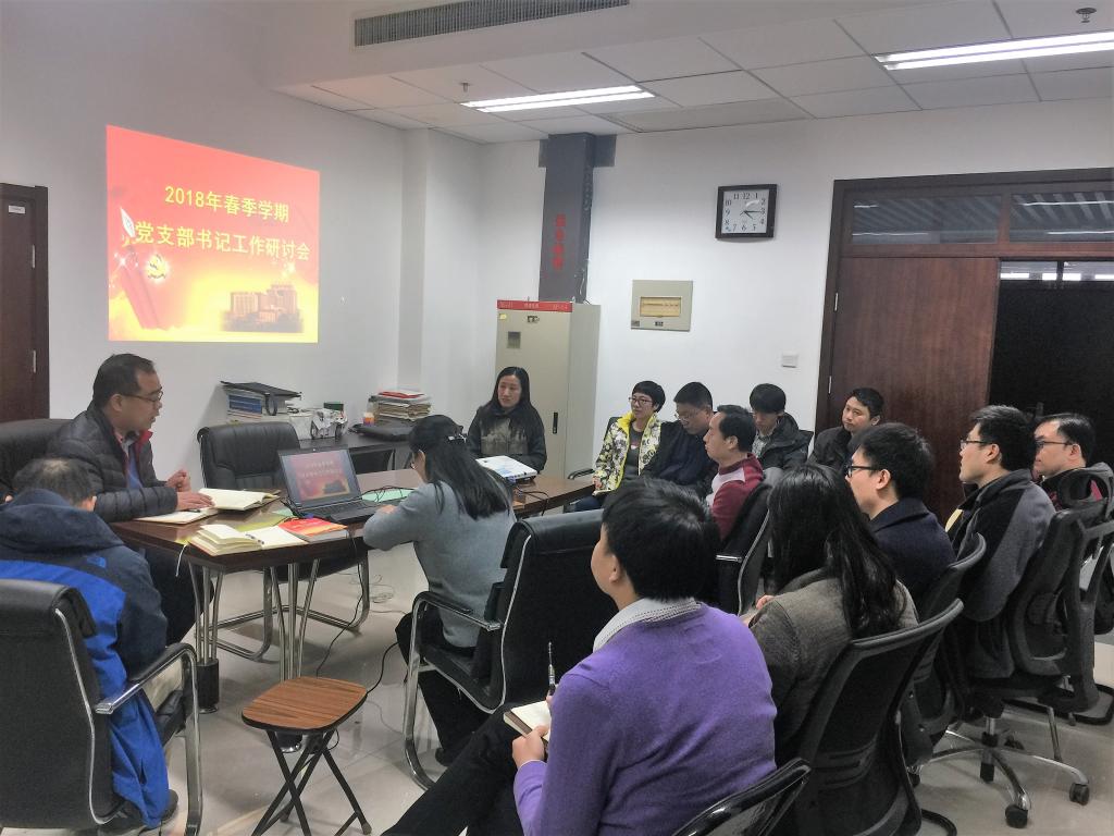 在博远楼336召开2018年春季学期党支部书记研讨会。党委书记李颖宏、副书记史宁和所有支部书记、党委秘书参加。