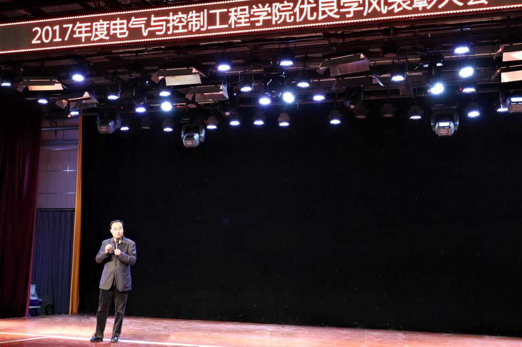 大会在优良学风班集体电气类17-7班改编的《北京东路的日子》合唱中精彩开场。同学们精心编排了情景剧,分三幕讲述了发现自我、超越自我,由“学渣”逆袭为“学霸”的故事,一幕幕情景真实展现了学生的大学生活。情景剧结束后,与会领导为获奖者颁奖,副校长王建稳为师生们颁发了优秀科创团队、优秀科创指导教师、优秀科创先进个人、优秀科创作品等奖项;校学工部部长高国伟、团委书记何有华颁发了优良学风先进个人、学习进步先进个人、晨光之星奖项;学院党委书记李颖宏、院长王力为优良学风班集体及最佳学风宿舍代表颁奖。