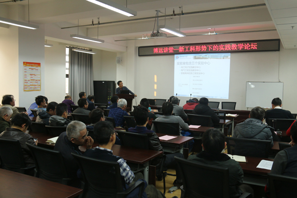 全体教师在博远楼452开设教学论坛 ,主题为新工科形势下的实践教学,论坛由副院长徐继宁主持。