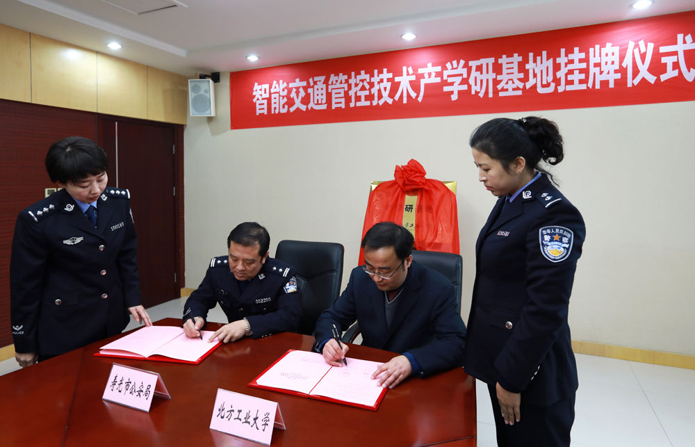 与山东省寿光市公安局交警大队共同签订“智能交通管控技术产学研基地”合作协议,并在山东省寿光市交警大队举行产学研基地挂牌仪式。