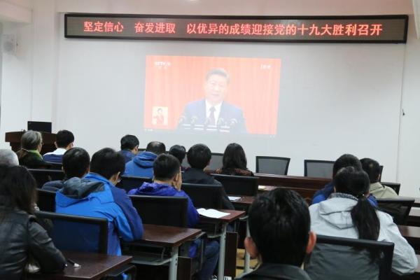 党委在博远楼452组织全体教工党员观看了十九大开幕会直播,怀着激动的心情聆听了习近平总书记代表十八届中央委员会作的报告。