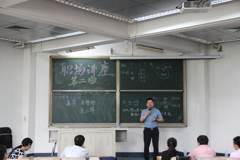 孙静彬老师从成功学的角度阐述了如何投资自己,通过讲述自己的职业生涯,解释了人才的分类,进而教授同学们如何成为这样的人才;夏二祥老师通过与同学们积极互动,阐释了行动比想象更重要,并鼓励同学们多走出学校,多接触社会。