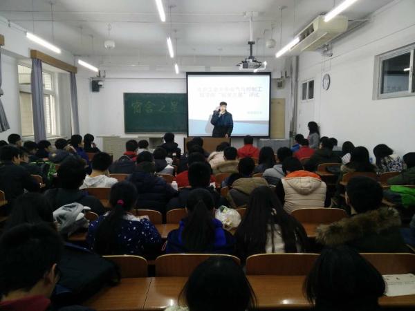 学院团总支书记赵帅作了赛前致辞,他希望新生高度重视宿舍文化建设,培育和谐共进的宿舍氛围,将成果巩固并真正落实到今后的学习生活中去。经各宿舍报名及学院初步筛选,共计产生12个优秀宿舍进行最终比拼。各宿舍长以PPT形式作了现场展示,展示内容包括宿舍logo设计、宿舍成员风采、宿舍环境及宿舍公约四个方面。最后,15级学生辅导员李庚洋为大赛作了总结。