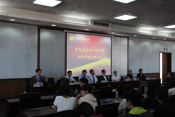 在四教15层报告厅召开了2015级硕士研究生迎新大会。副校长李正熙、学院党委书记李颖宏、副院长(主持工作)王力、副院长徐继宁、党委副书记隋俊宇、控制科学与工程一级学科负责人孙德辉教授、电气工程一级学科负责人孙力教授以及二级学科责任教授出席大会。会议由研究生辅导员胡长斌主持。