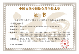 第5次荣获中国智能交通协会科学技术奖,此前已荣获一等奖一项、二等奖一项、三等奖两项。
