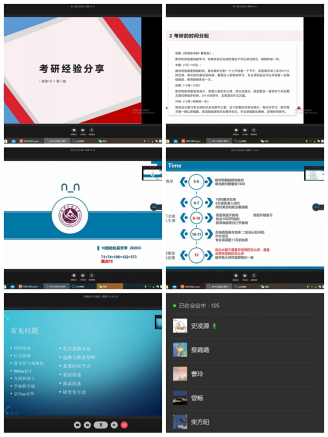 通过企业微信举办了2017级线上考研动员暨经验交流会。16级各专业今年考研成绩突出的史凌源、臧益果、黄一俊、吴天宇以及成功保研的孙炳利等同学主讲。五位同学根据自身的经验,分别向17级的各位同学介绍了如何系统地进行考研备战,为大家“传经送宝”。会议由辅导员王磊老师主持。