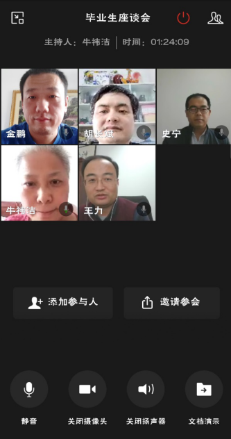 通过企业微信平台召开了毕业研究生座谈会,会议采用线上方式。学院院长王力,院党委副书记史宁,负责研究生工作的胡长斌、牛祎洁、金鹏三位老师参加了此次座谈,主要与同学们就毕业论文、答辩、在线学习、就业、毕业手续办理等相关事宜进行了深入交流。