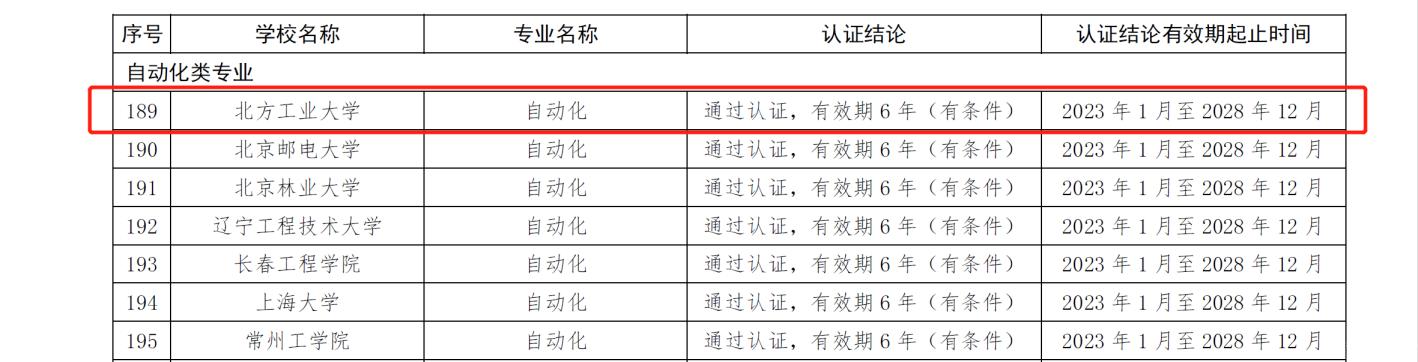 自动化专业完成了中国工程教育专业认证协会组织开展的学校自评、自评审核、专家组现场考查、结论审议等程序,依据《工程教育认证工作规范》(T/CEEAA 002-2022),经中国工程教育专业认证协会理事会审议批准:自动化专业通过认证,有效期6年(有条件),认证结论有效起止时间为2023年1月至2028年12月。