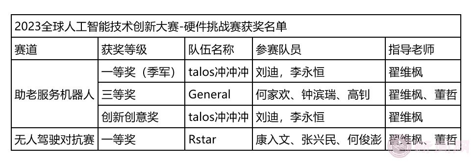 学生在比赛中表现出众,在硬件挑战赛中获得助老服务机器人赛项季军1项、三等奖1项、创新创意奖1项,无人驾驶对抗赛项一等奖1项的优异成绩,共获得主办方颁发的奖金20000余元。