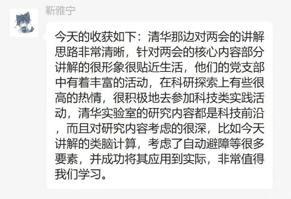 控制研党支部师生的到来表示欢迎,并表示这是一次十分有意义的交流共建活动。清华大学博士生讲师团张鉴洲同学带领支部党员共同学习了两会精神,深入浅出地为同学们讲解了二十大以来党的先进理论政策的制定过程和实施目标。双方党支部对各自党支部建设情况进行了介绍,表示要积极组织丰富多彩的活动,向优秀党支部看齐。