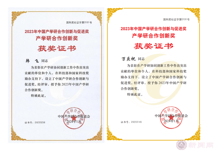 共获4项奖励。其中,产学研合作创新奖(个人)2项,产学研合作创新成果奖二等奖2项。