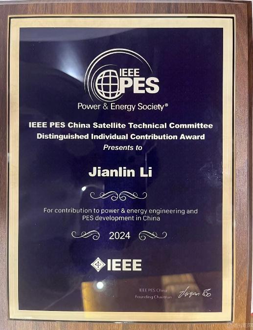 李建林教授获得“IEEE PES 中国卫星技术委员会2024年度杰出个人贡献奖”。