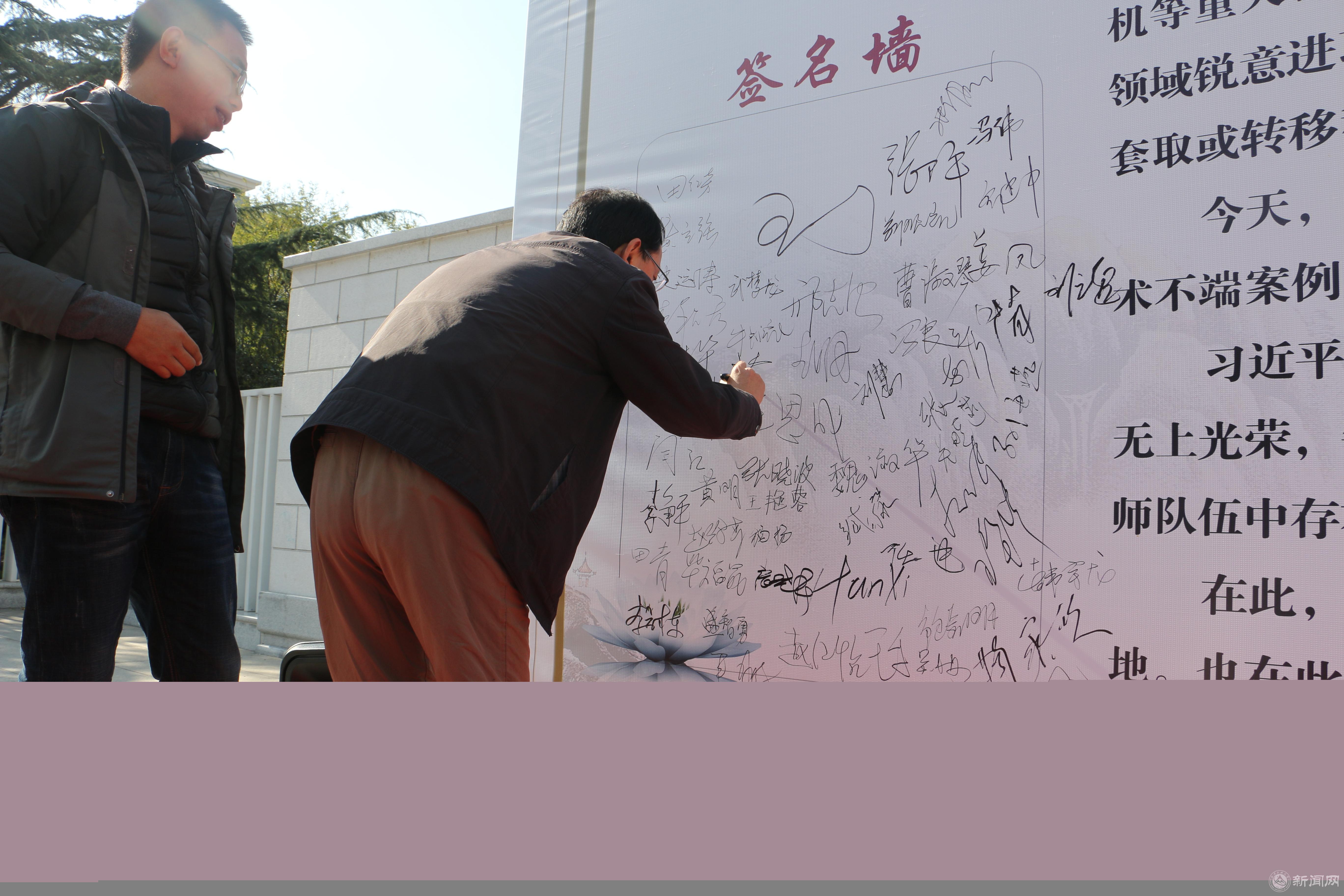 现场教师共同表态“抵制科研腐败,专心学术,以身作则,两袖清风,共同构建清廉、透明的科研空间”,并在签名板上郑重签字。学生党员、入党积极分子作为讲解员为大家详细讲解典型的科研腐败、学术不端案例。