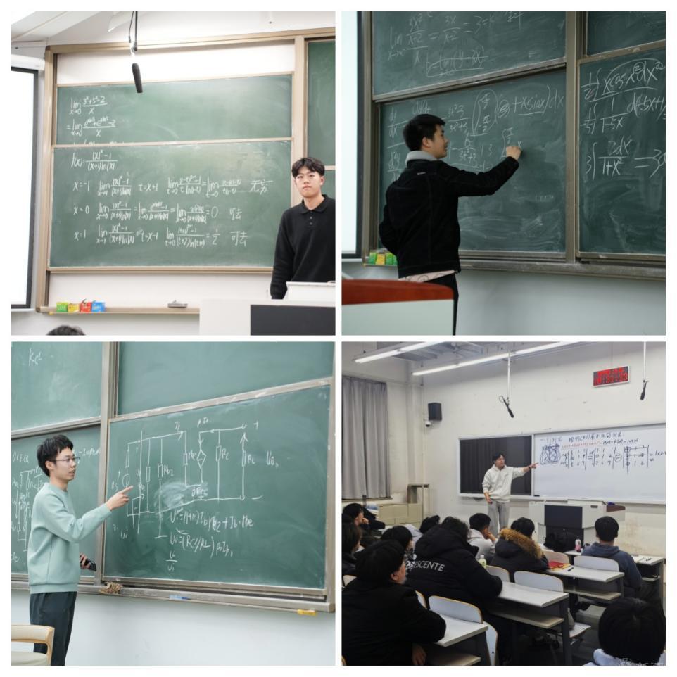 多位主讲志愿者结合自身学习经验与备考心得,围绕学科核心知识点展开系统讲解。期中阶段,吕荣泽聚焦高数期中考试重点,梳理核心考点并分享备考方法,为同学们夯实基础;期末阶段,翟志豪聚焦高数期末高频考点,梳理核心模块并分享实用解题技巧;陈宇龙针对模电抽象难点,解读关键章节知识点逻辑与解题方法;李昭阳则面向两年制学生,梳理线代核心内容关联脉络,强化解题规范。讲解结束后,主讲志愿者还与现场同学展开互动答疑,针对大家提出的个性化问题逐一解答,现场学习氛围浓厚。