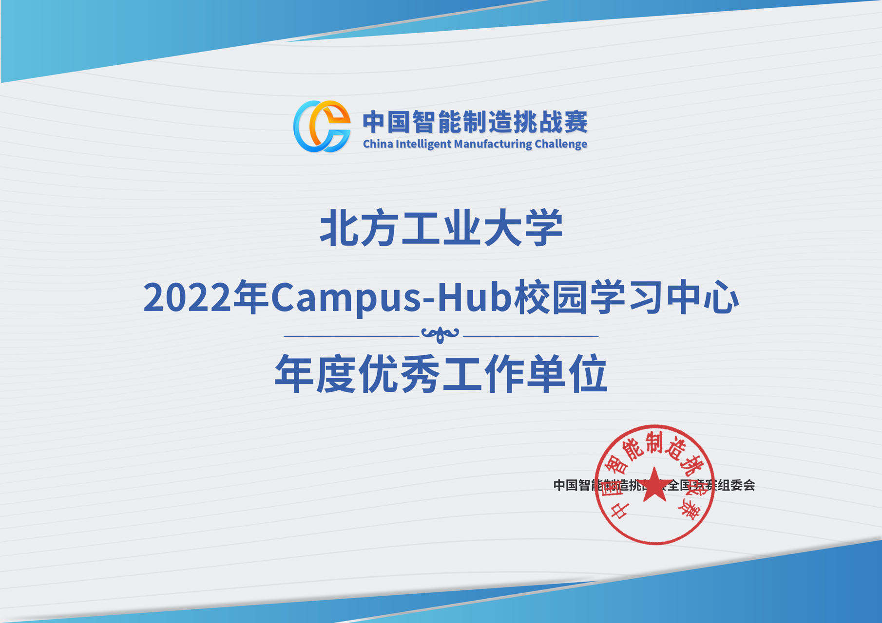 CIMC Campus-Hub校园学习中心先后两次获评“年度优秀工作单位”。实验室依托中国智能制造挑战赛平台,与北京交通大学、北京科技大学、北京化工大学智能制造相关实验室定期开展交流,全方位提高学生的专业素质和综合能力。