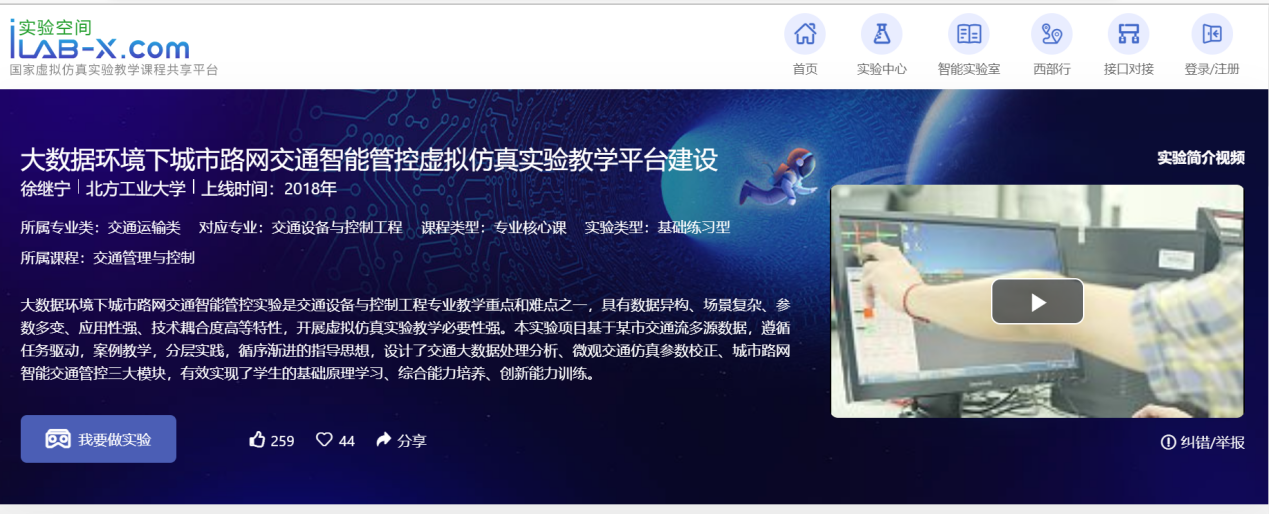 实验室建设了“大数据环境下城市路网交通智能管控虚拟仿真实验平台”,通过北京市教委遴选,在国家虚拟仿真实验教学平台上推广发布。在此平台上,推行了“课赛同步、赛教互动、赛学协同”的新型教学模式,将《交通管理与控制》的课程内容与信号调优、模型构建、数据分析等实际岗位需求相结合,并在疫情期间连续举办了三届互联网+交通信号干线协调配时线上比赛。
