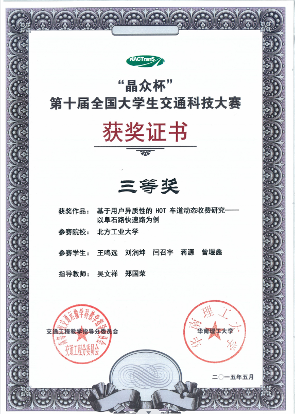 此外,该实验室可开展的大学生科技竞赛主要包括中国国际“互联网+”大学生创新创业大赛、中国机器人及人工智能大赛、全国大学生光电设计竞赛、全国/北京市大学生交通科技大赛、全国高校智能交通创新与创业大赛等交通运输类科技竞赛。