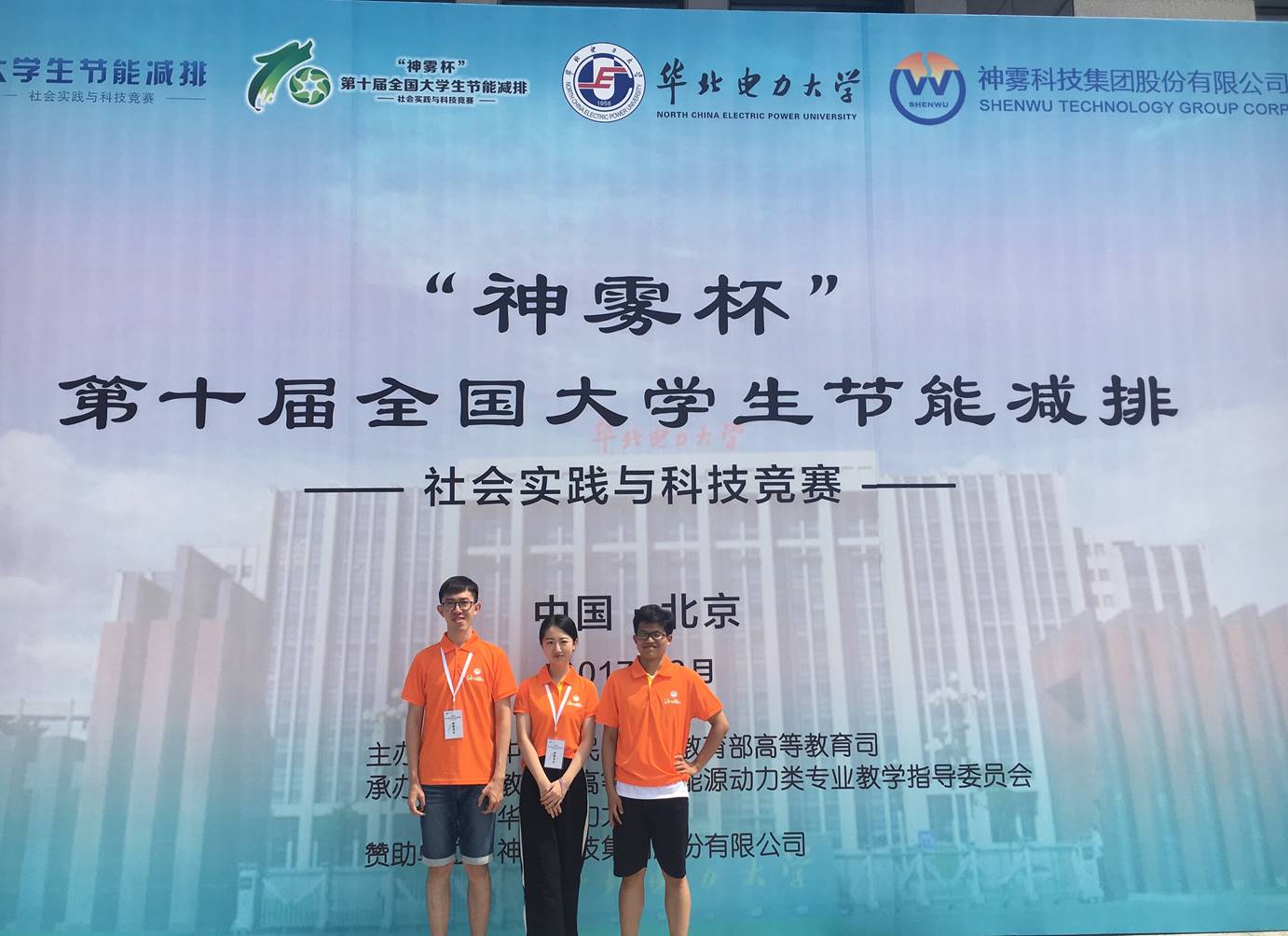 获得神雾杯第十届全国大学生节能减排大赛国家二等奖