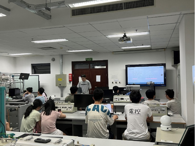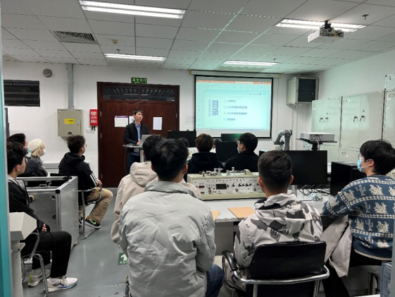 竞赛培训与组织上机调试工作主要由各赛项指导教师和研究生助教负责,具体包括信息化网络化、智能产线与协作机器人、离散行业运动控制、自由探索、流程行业自动化5个赛项的培训工作。培训首先对各个赛项的赛项目标进行解读,结合历年比赛经验,针对各赛题要点和评分细则进行分析,使参赛学生了解各赛项需要掌握的基础知识以及设计方法。然后带领参赛学生对各赛项的基本原理和基础技术的运用方法进行深入学习,同时理论结合实际,注重对学生实践能力的培养,根据参赛学生人数与设备情况进行调试时间安排,确保每次课程培训过后每个学生都能进行实际调试操作,从而使学生加深理论理解,培养综合能力。课程培训现场如图2所示。最后结合各赛项实际情况开展校园选拔赛,对培训效果进行评估,对培训内容进行调整,保障整体培训水平,校赛现场如图3所示。
