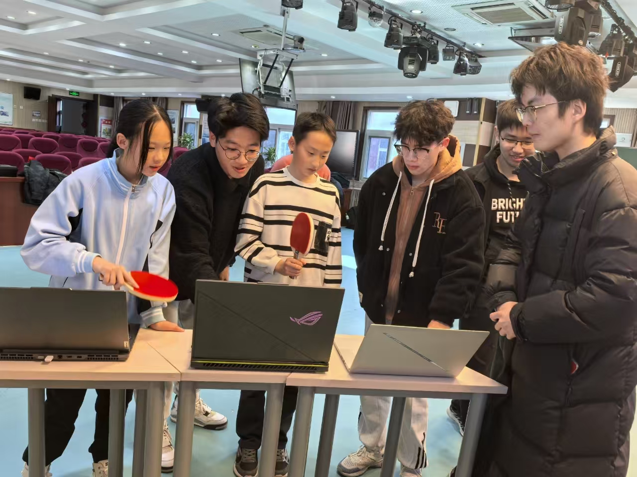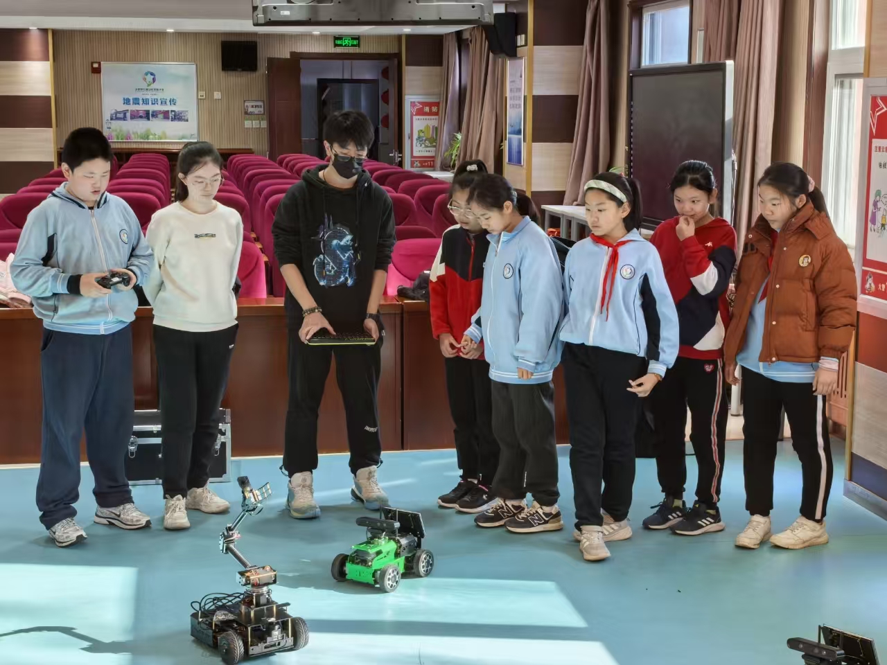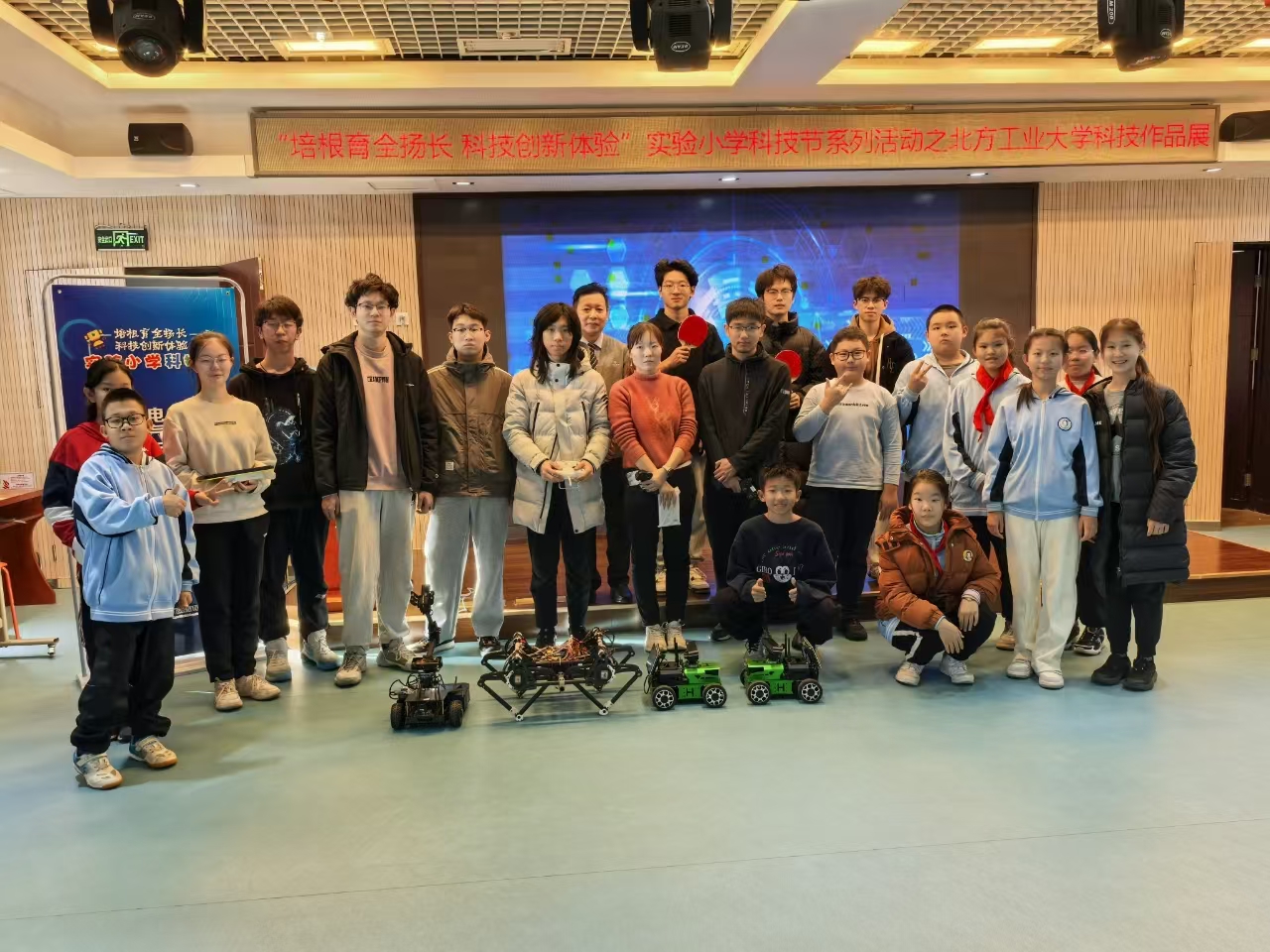 各科技竞赛团队的大学生志愿者,怀揣着对科学的探索和对教育的担当,携八自由度四足机器狗、全向轮英雄机器人、Apollo智能小车、智慧农业自动抓取机器人、数字乒乓球拍等科技作品,走入石景山区实验小学的校园,参加实验小学科技节系列活动,为孩子们展现了一个奇妙的科技世界。