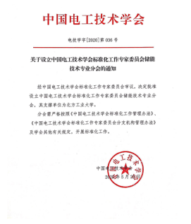 成为中国电工技术学会储能技术标委会支撑单位