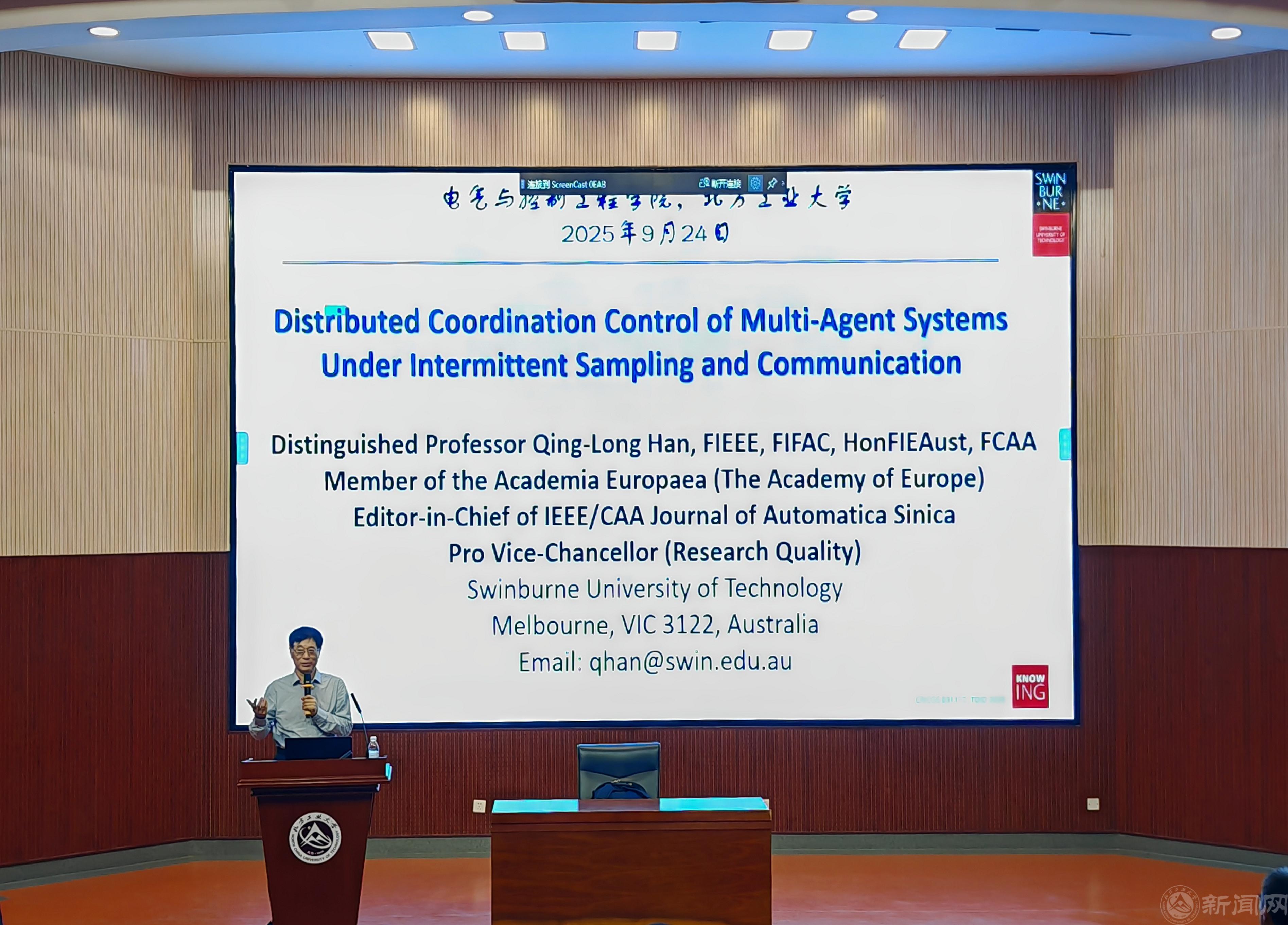 控制科学与工程学科博士新生讲授了“控制科学与工程前沿专题”开学第一课。韩清龙院士以“Distributed Coordination Control of Multi-Agent Systems Under Intermittent Sampling and Communication”为主题,为博士生带来了一场前沿学术盛宴。报告由擦边短剧