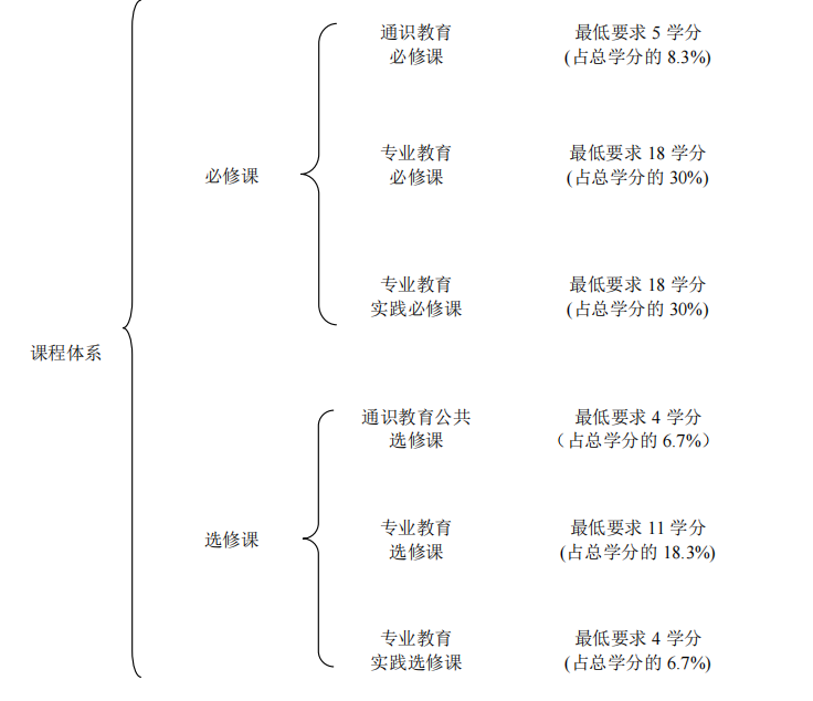 注:1.专业教育实践选修课最低学分要求为 4 学分,实践选修课超出学分要求的部分可计入专业教育选修课学分。